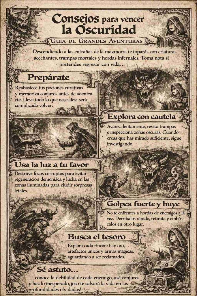 La gran idea que sostiene este juego es muy bonita: que la mazmorra no sea solo un escenario, sino una experiencia.